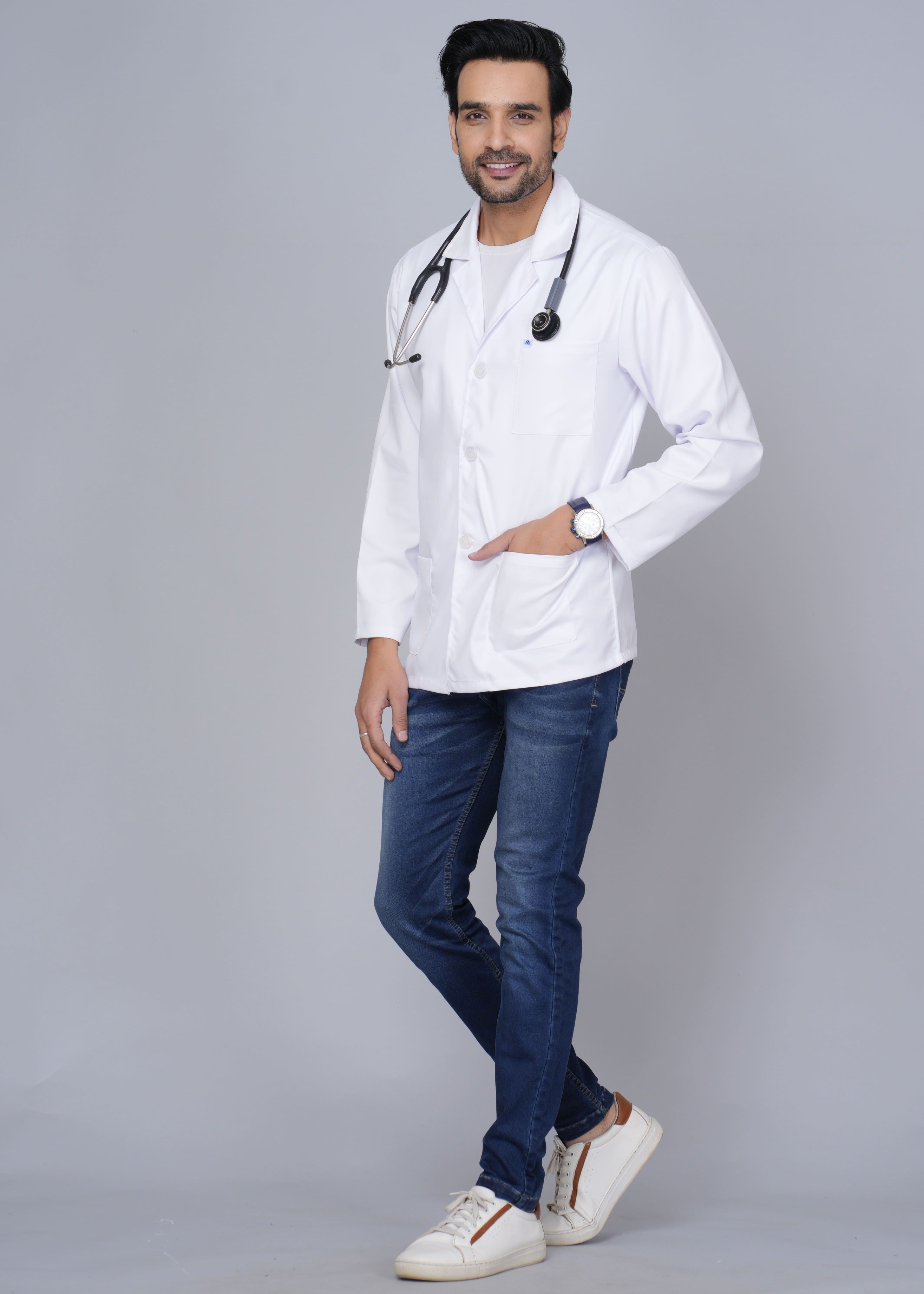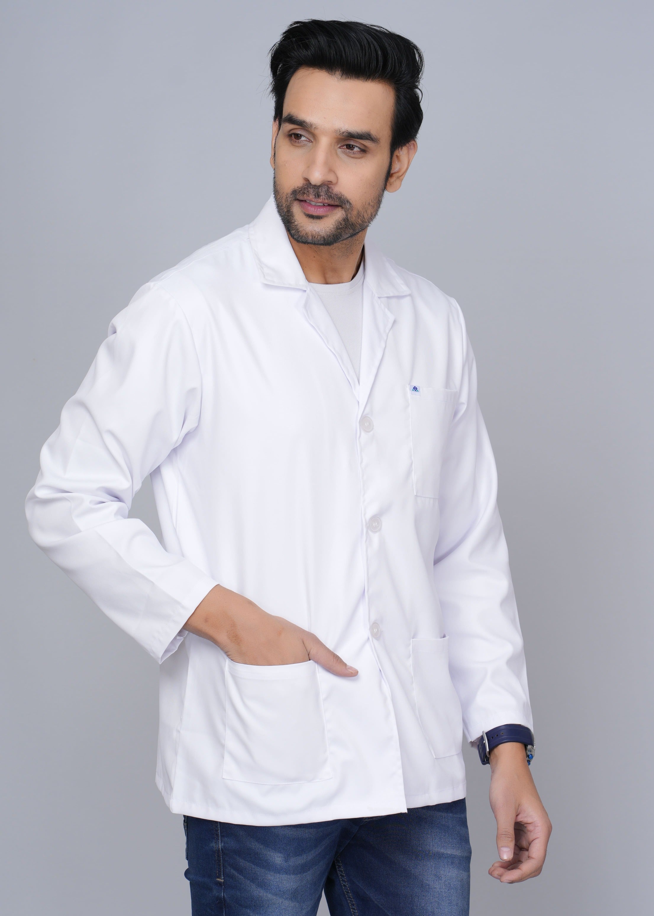 This professional men's lab coat features full sleeves for complete coverage and a polished look. The high-quality fabric and superior construction provide both comfort and durability, making it the perfect choice for any industry expert. Stay organized with multiple pockets and maintain a professional appearance with the crisp design.