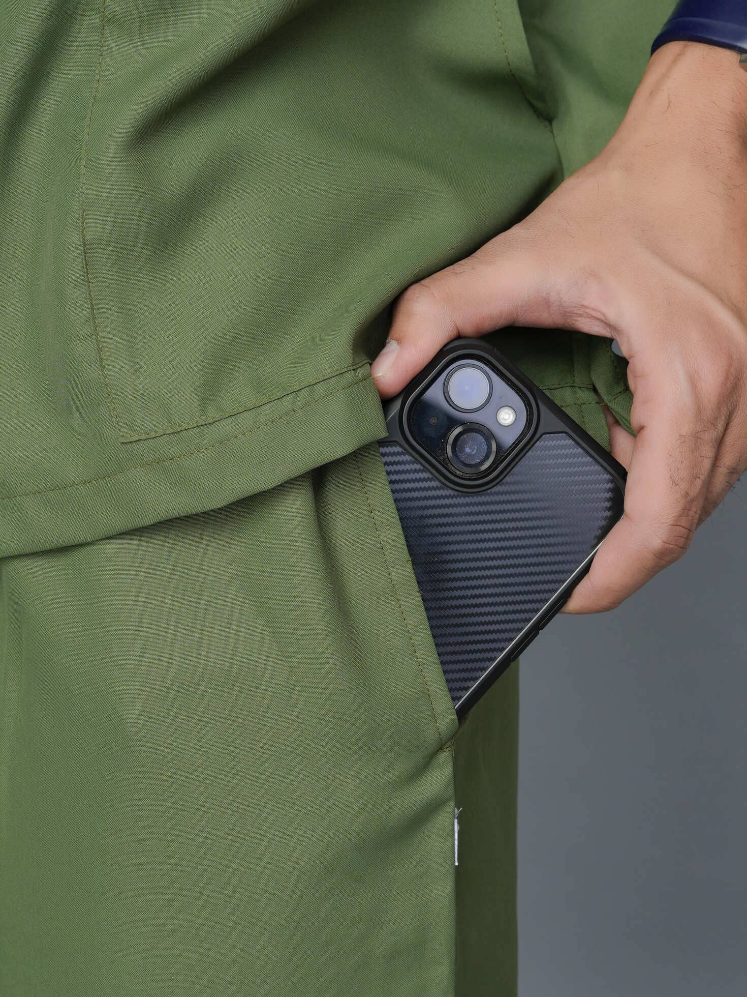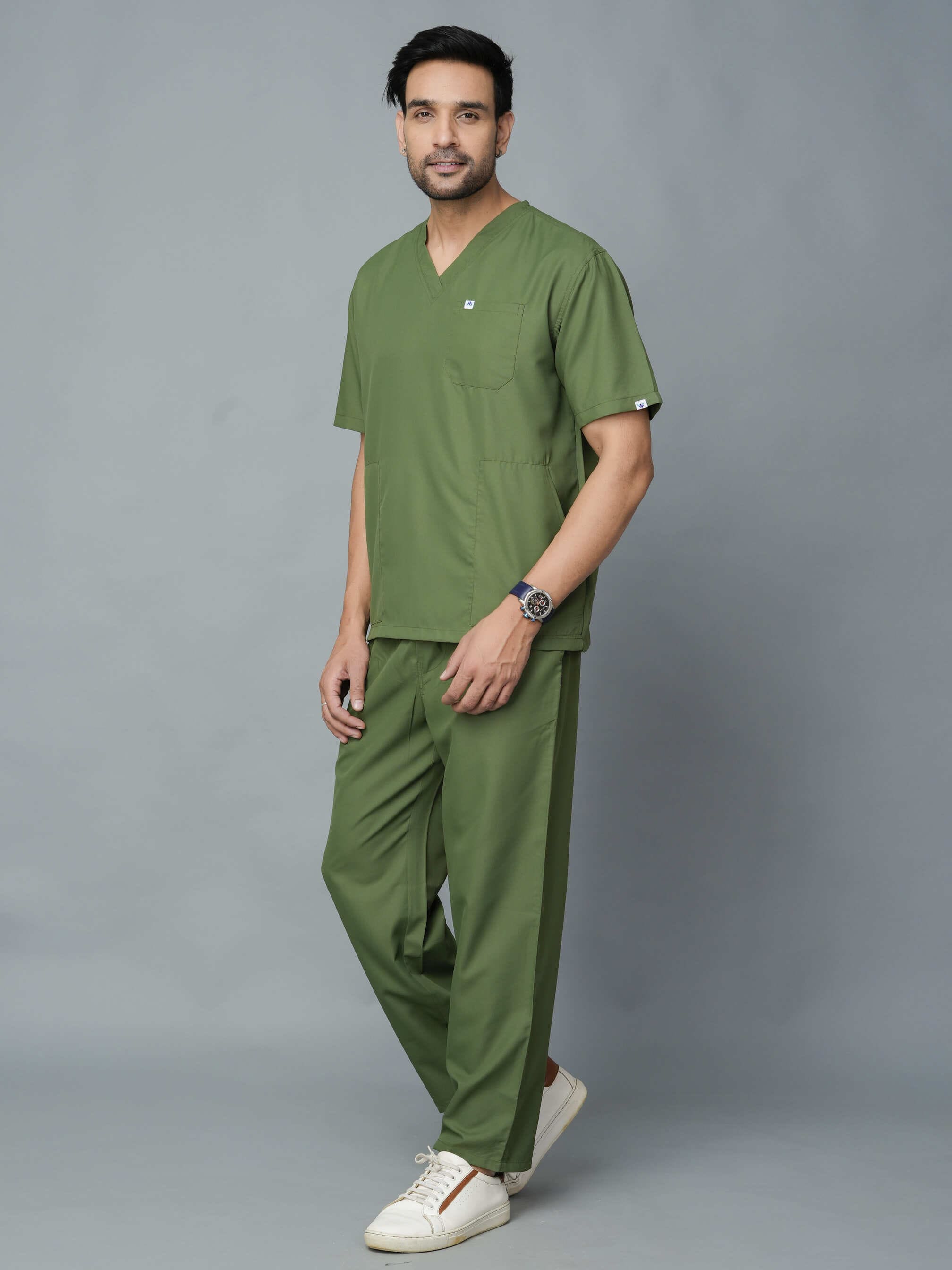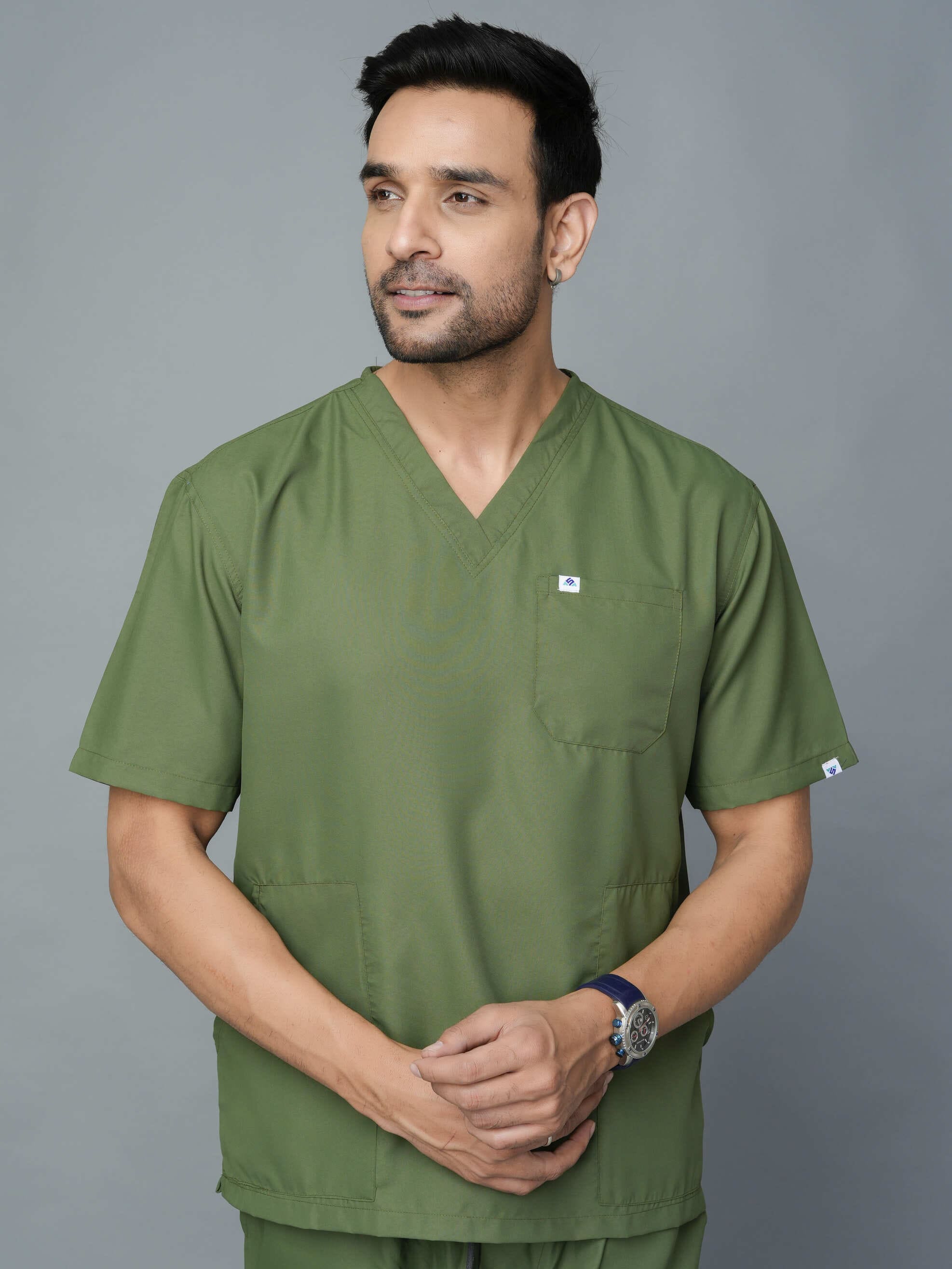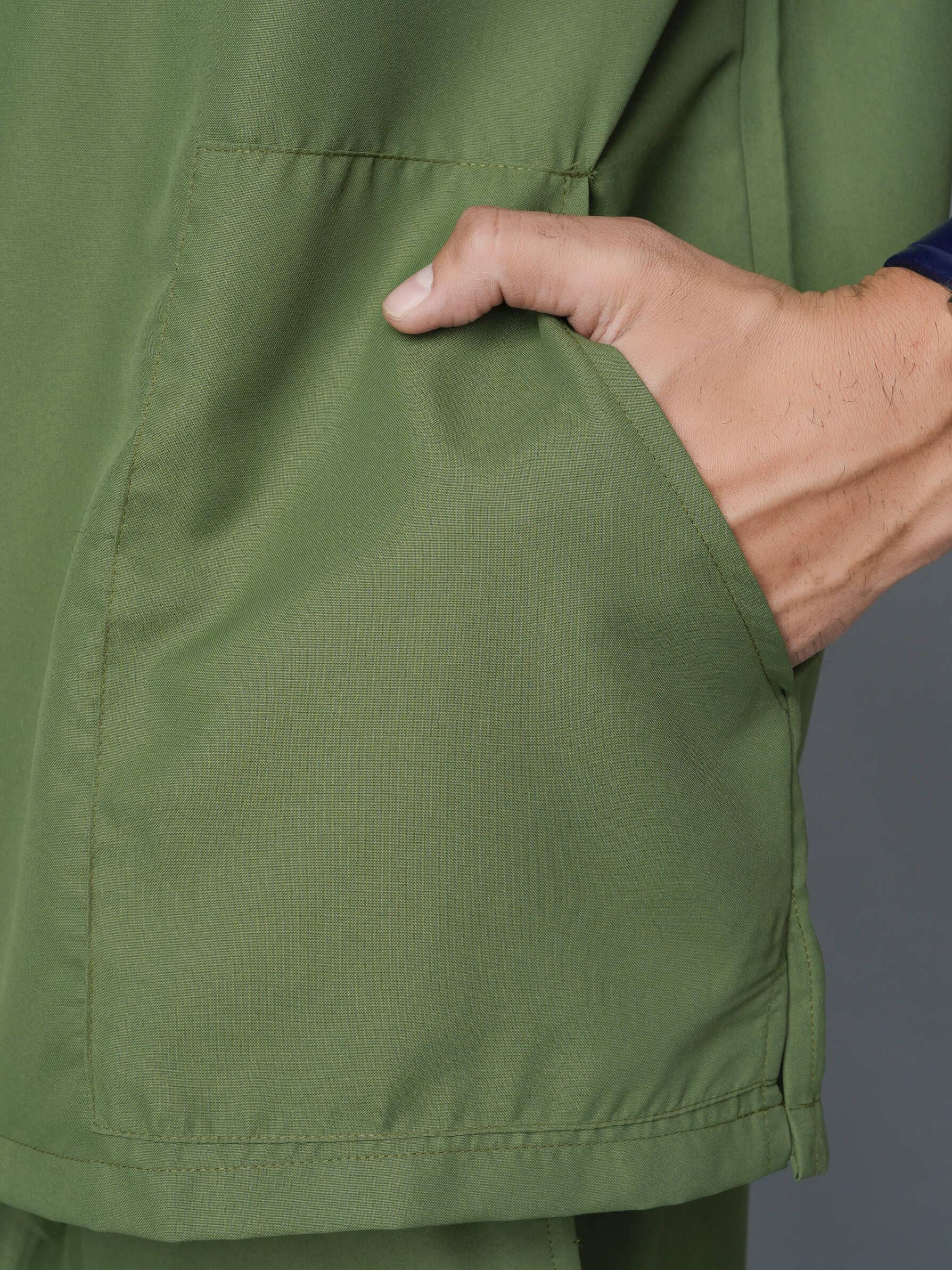 The Professional Men's V-Neck Scrub in Olive is a must-have for any medical industry professional. This sleek and stylish scrub not only provides a professional look, but also offers superior comfort and functionality. With its v-neck design and durable fabric, it allows for a full range of motion without sacrificing style. Upgrade your work wardrobe today with this expertly designed scrub.